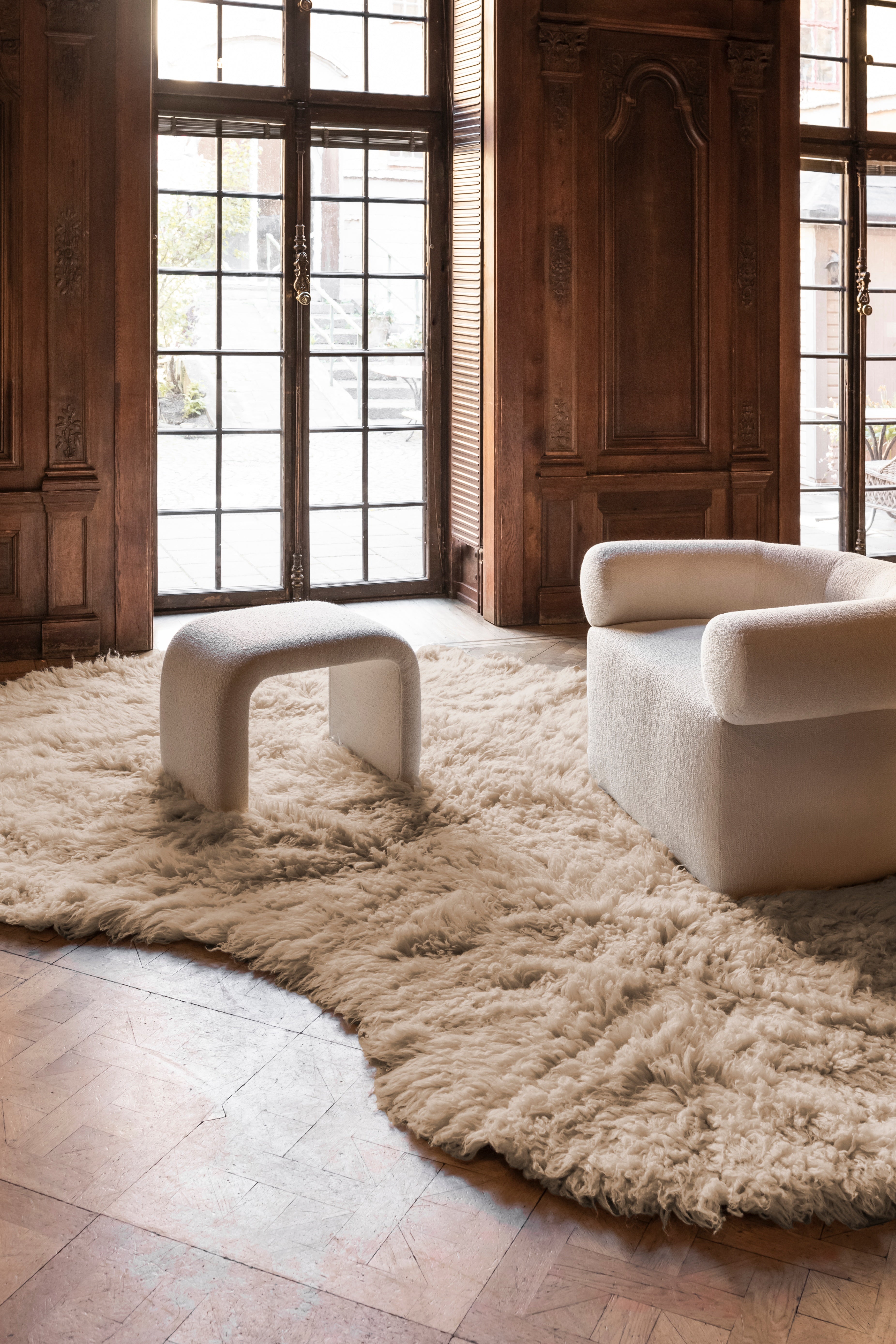 Prabangus rankų darbo vilnonis kilimas su organiška forma ir minkštu, ilgo plaušo paviršiumi, kuris interjerui suteikia jaukumo ir išraiškingos tekstūros. Kilimas pagamintas iš 100 % Naujosios Zelandijos vilnos ir audžiamas patyrusių meistrų, todėl yra itin minkštas, patvarus ir kiekvienas gaminys šiek tiek unikalus. Šiltas Oatmeal (smėlio) atspalvis lengvai dera įvairiuose interjeruose – nuo skandinaviško iki modernaus minimalistinio stiliaus, o organiška forma leidžia kilimą kūrybiškai derinti erdvėje ar sluoksniuoti su kitais kilimais.