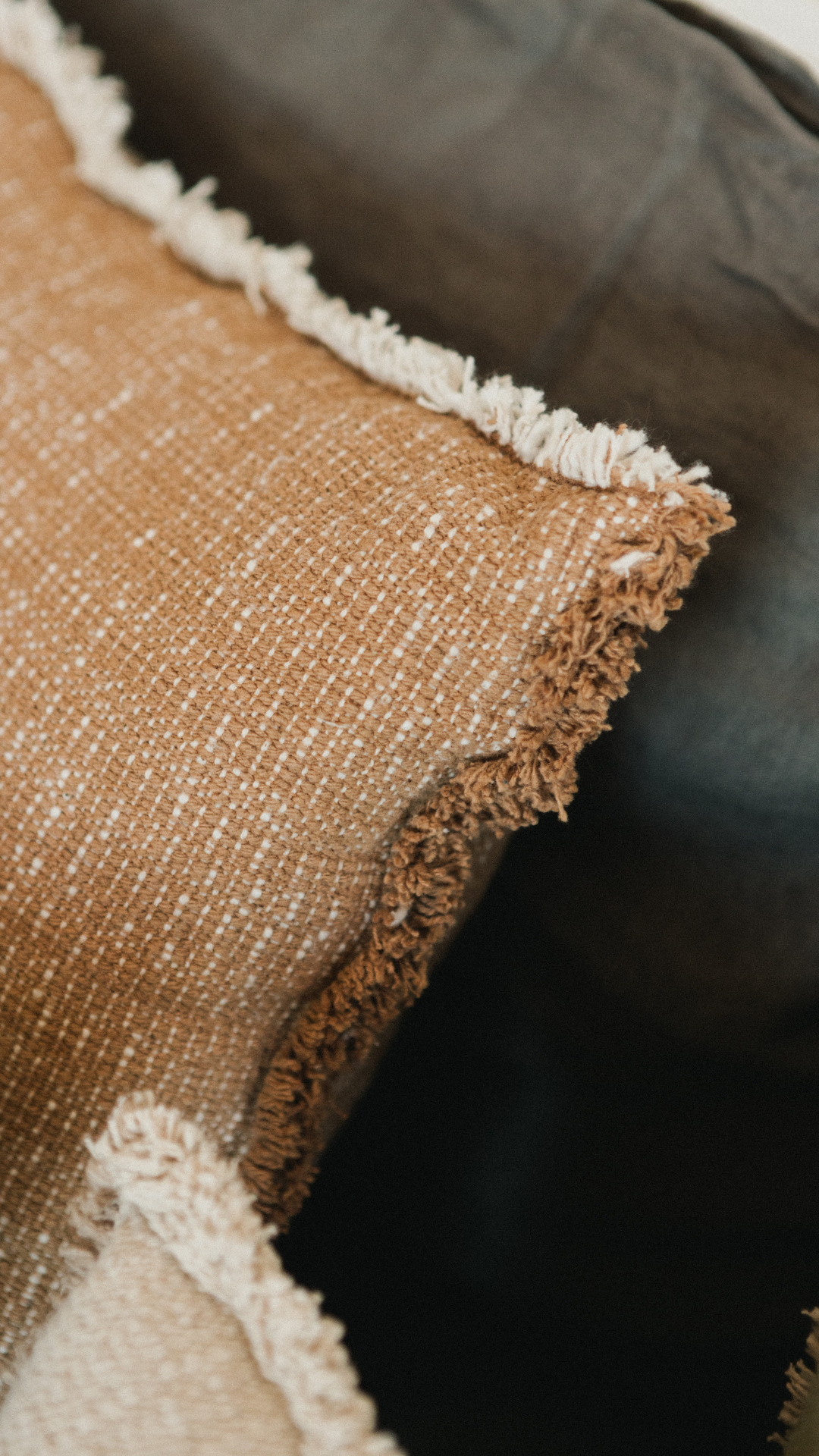 Rankomis austa dekoratyvinė medvilninė pagalvė, kuri parduodama kartu su vidine pagalvės dalimi (filler), todėl yra paruošta naudoti iš karto. Pagalvė pagaminta iš aukštos kokybės natūralios medvilnės, naudojant tradicinę rankinio audimo techniką, kuri suteikia išskirtinę tekstūrą ir ilgaamžiškumą. Neutralus molio atspalvis lengvai pritaikomas įvairiuose interjeruose – nuo modernaus iki skandinaviško ar minimalistinio stiliaus. Ši kvadratinė dekoratyvinė pagalvė puikiai tinka svetainei, miegamajam ar vaikų kambariui, suteikdama jaukumo ir natūralumo namų erdvei.
