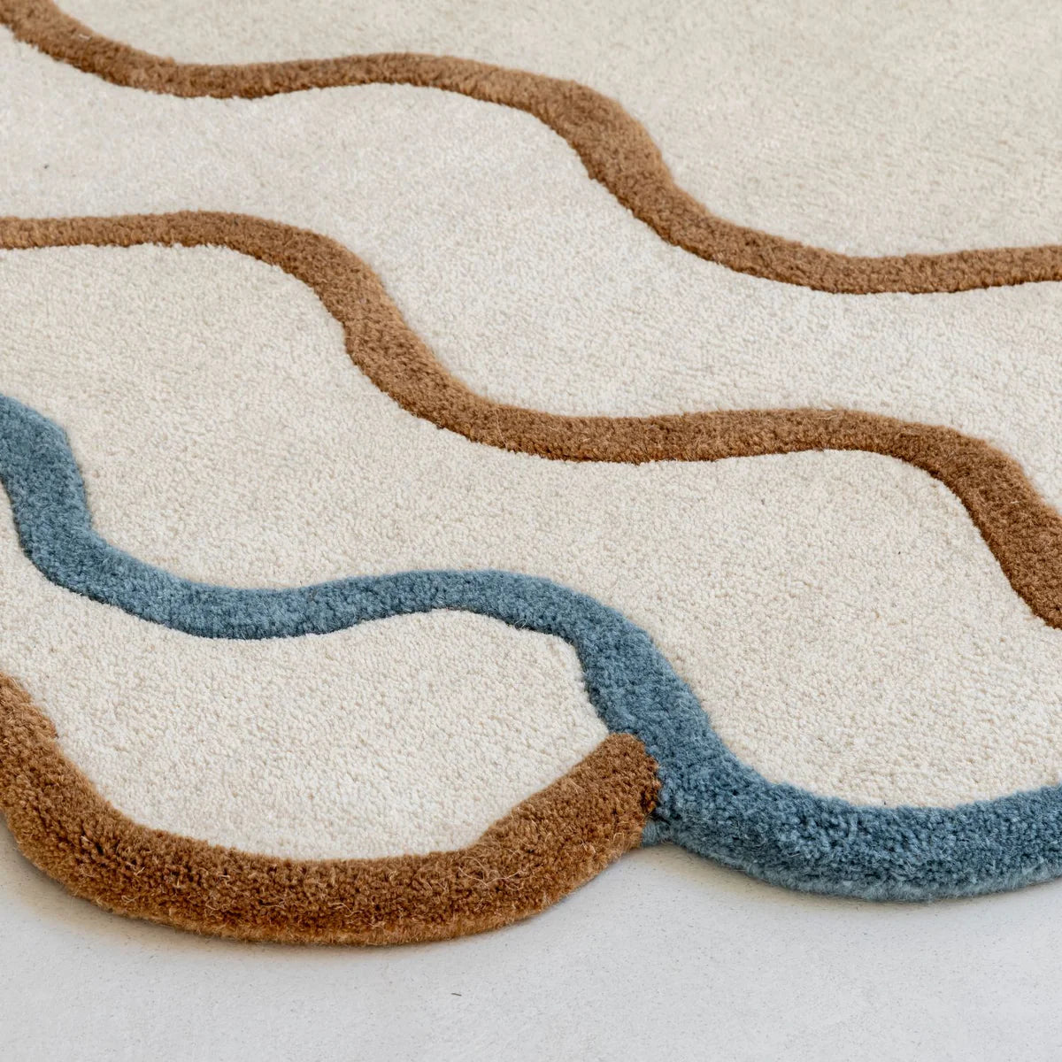 Rankų tuftuotas vilnos dizaino kilimas yra puikus prabangaus kilimo akcentas svetainėje, miegamajame ar poilsio zonoje – suteikia stiliaus, komforto ir natūralios spalvų harmonijos moderniems interjerams.